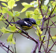 flowers. Listen closely and you will hear songs of many migrating warblers